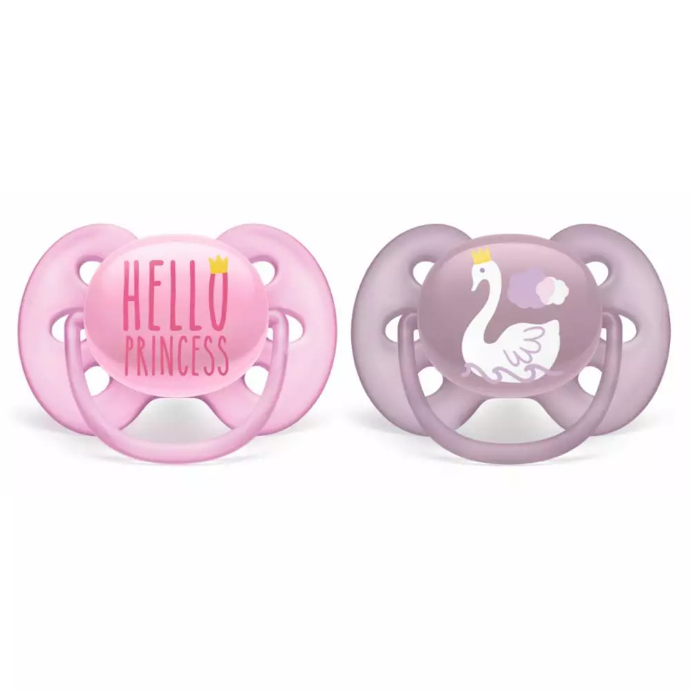 Avent Ultra Soft nappens särskilt stora ventilationshål håller huden torr och ger huden möjlighet att andas. Nappens design är symmetrisk, vilket skyddar den naturliga formen på gom, tänder och tandkött. Nappen är tillverkad av BPA-fri silikon.