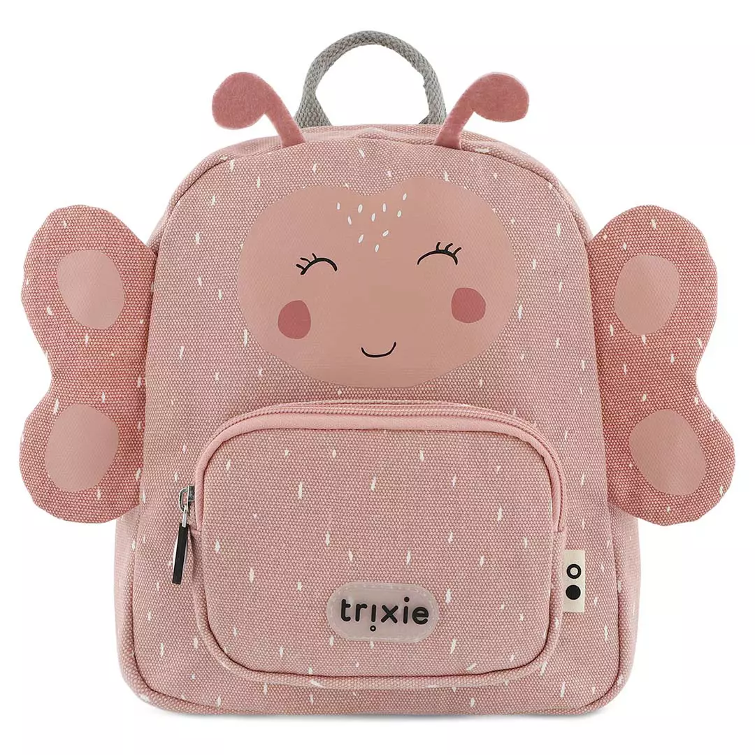Barnryggsäck Trixie, Mrs. Butterfly är den perfekta följeslagaren för barnet till förskolan, klubben och utflykten. Ryggsäcken har ett huvudfack och en separat mindre ficka fram. Båda fickorna har dragkedja med stora, lättanvända dragare. Ryggsäcken har en lekfull bild av en fjäril samt roliga antenner och vingar som detaljer på sidorna.