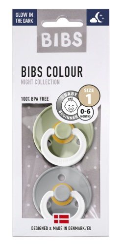 Bibs Night naturgummisnoppa 0-6 månader, Sage/Cloud är en nattversion av den populära snoppmodellen. Bibs Night naturgummisnoppa har en snoppring som lyser i mörkret. Nappen är lätt att hitta i mörkret om den faller ur munnen.