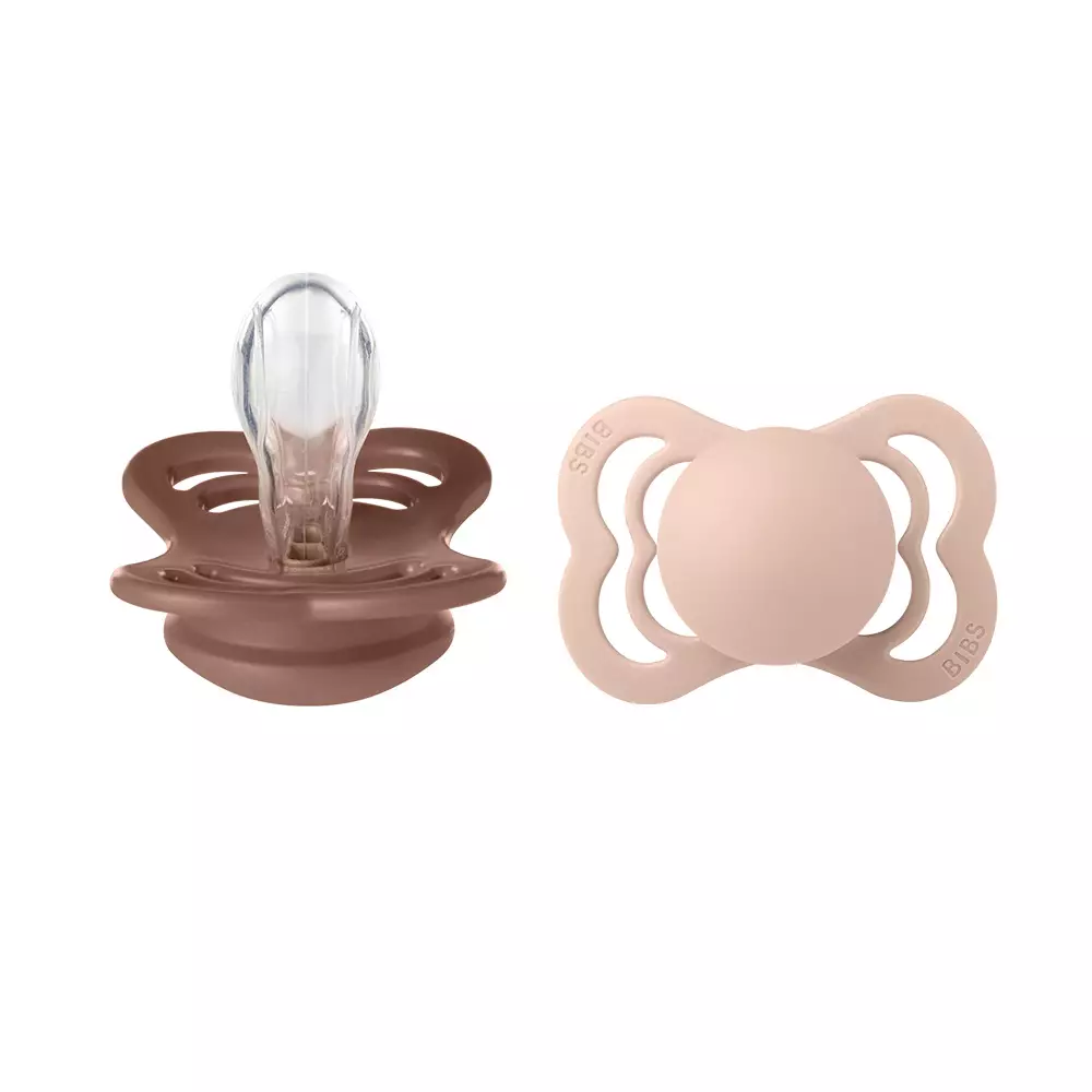 Bibs Supreme silikonnappar 2 st 0-6 månader, Woodchuck/Blush -paketet innehåller alltså två nappar i olika färger, som passar från nyfödd upp till cirka 6 månaders ålder.