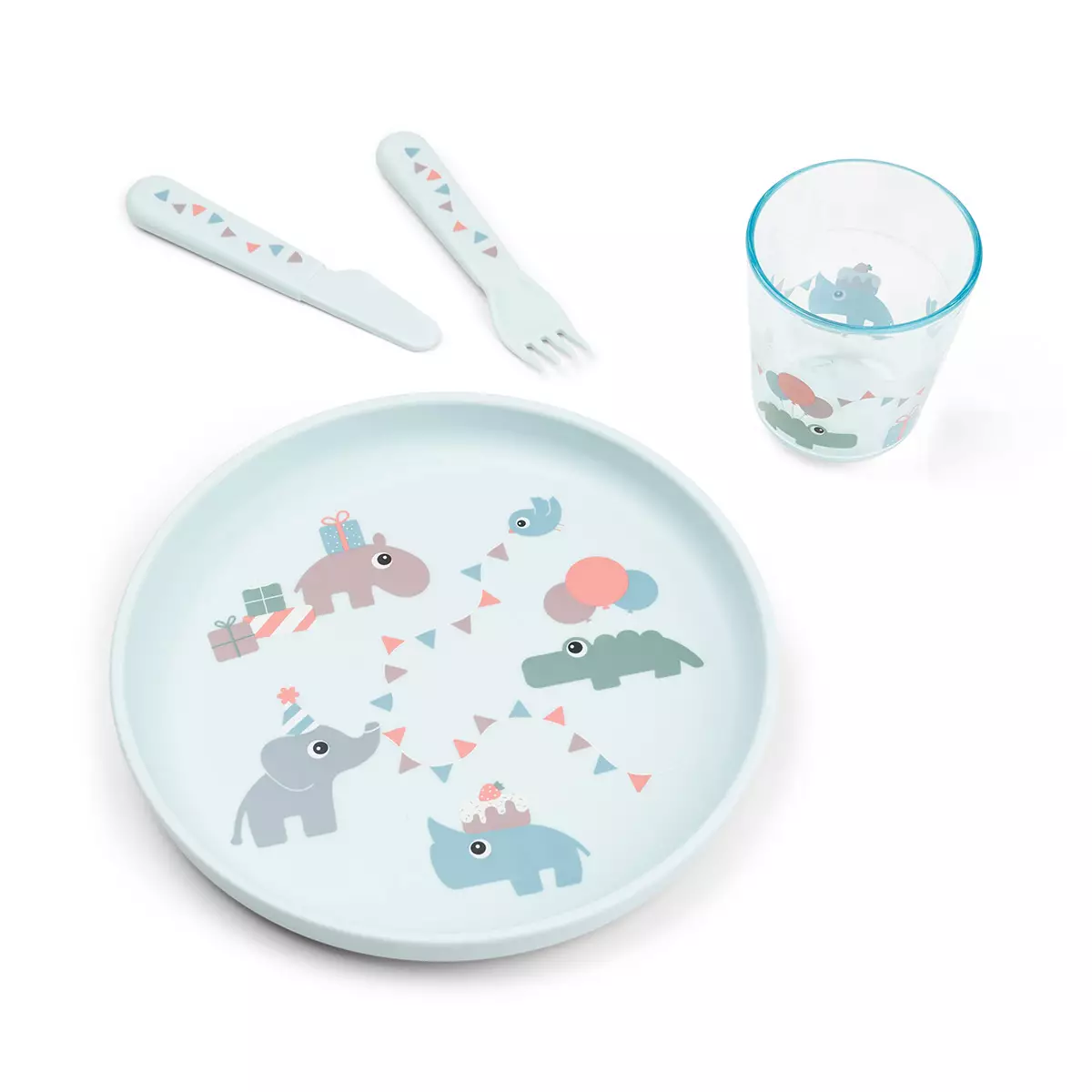 Done By Deer Foodie matset Celebration Blue är en underbar set för barnets måltider. De vackra släta tallrikarna passar till även mer festliga dukningar. Tallrikens botten har en halkfri kant.