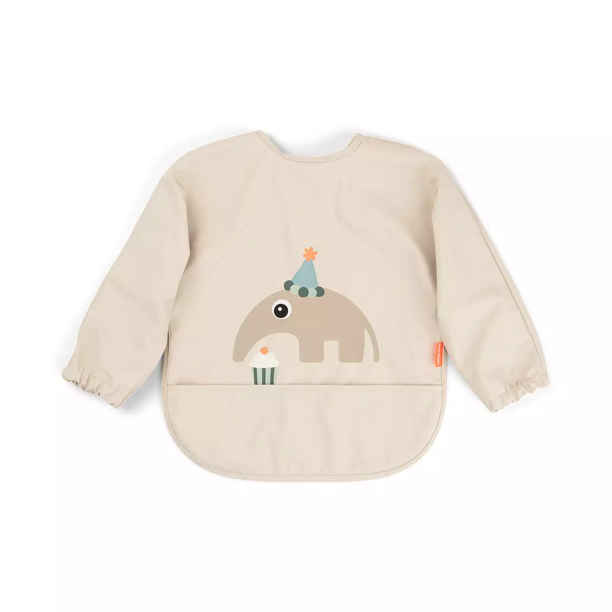 Done By Deer haklappen med ärmar i Celebration Sand är ett skydd med ärmar som kan användas även när barnet målar eller gör andra kladdiga aktiviteter. Den skyddar effektivt ärmarna och kläderna från smuts. I nacken finns två tryckknappar: haklappen passar både för spädbarn och småbarn.