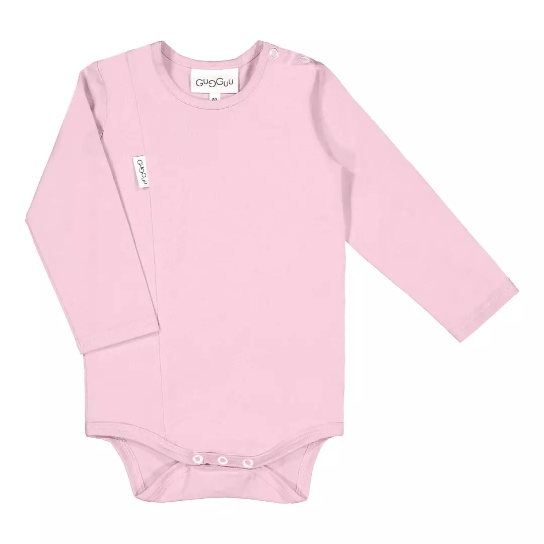 Gugguu rosa bodyn till baby, tillverkad av mjuk och högkvalitativ ekologisk bomull.