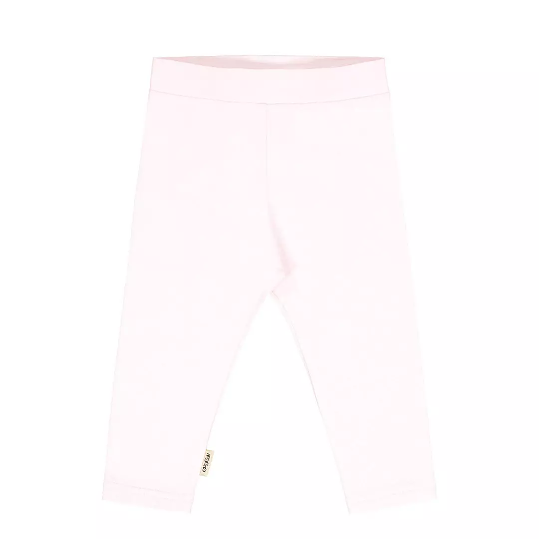 Gugguu rosa bomull leggings för baby. Byxorna har ett brett midjeresår och är mjuka och bekväma för babyn att ha på sig.