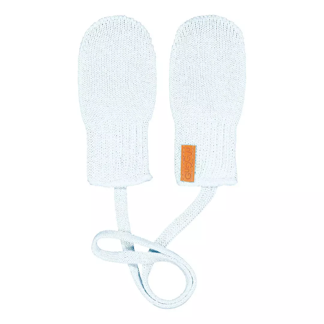 Gugguu Puuvillalappar Baby Mittens Soft Blue är ekologiska bomullshandskar för bebisar. Handskarna är förbundna med ett snöre så att de lätt kan hållas tillsammans.