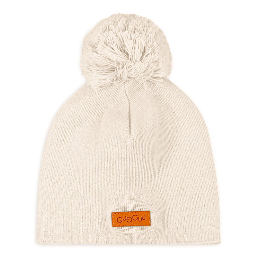 Gugguu ljus ekologisk bomullsmössa för barn. Mössan har en söt tofs på toppen.
