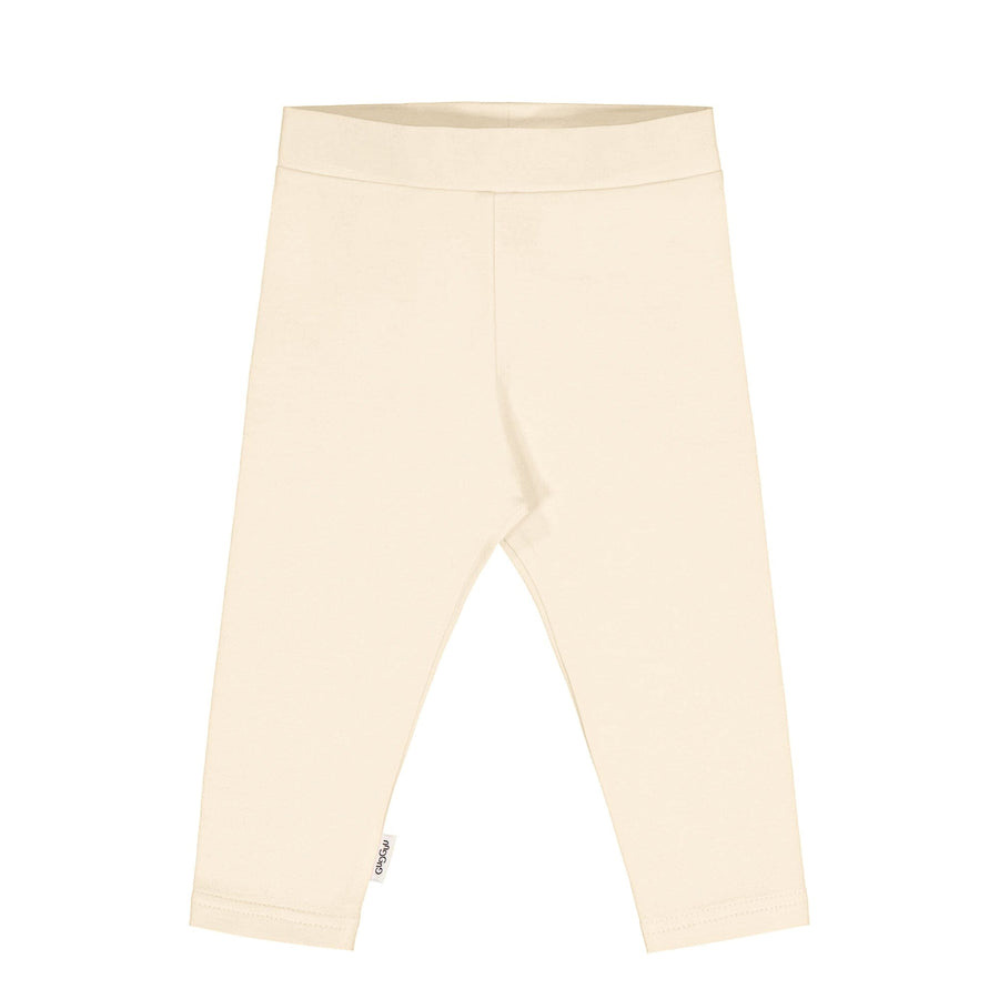 Gugguus beige bomullsleggings för baby. Byxorna har en bred midjeresår och är mycket mjuka att ha på sig för babyn.