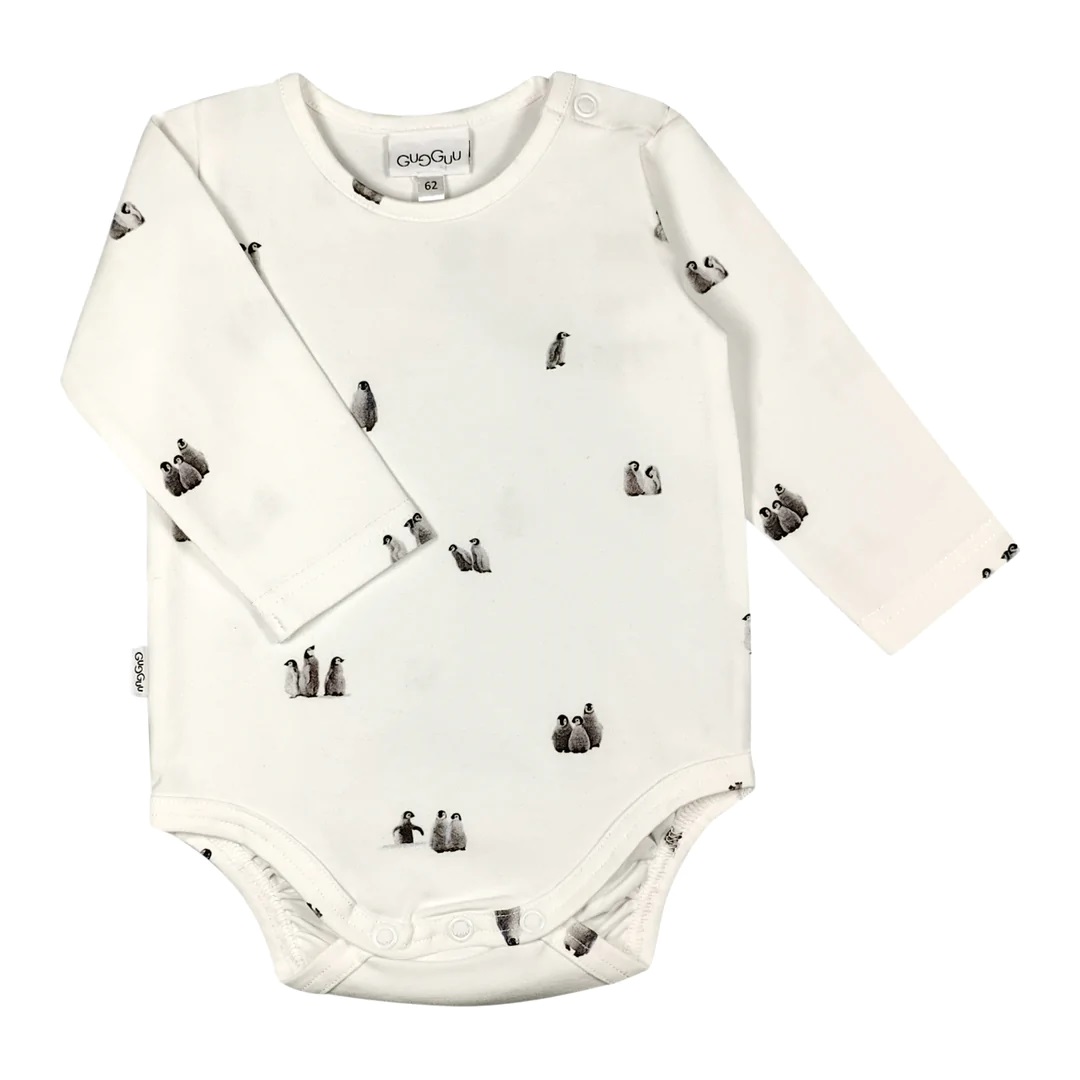 Gugguu Print Baby Bodysuit Baby Penguin är en mjuk body i bomull för din baby med ett charmigt pingvinmönster.