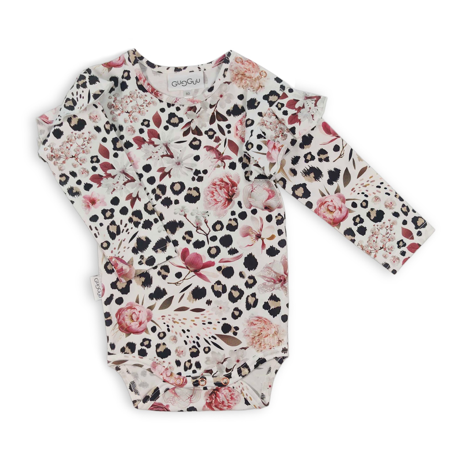 Gugguu Print Frilla Bodysuit Leo Flower är en mjuk bodysuit av bomull för baby.