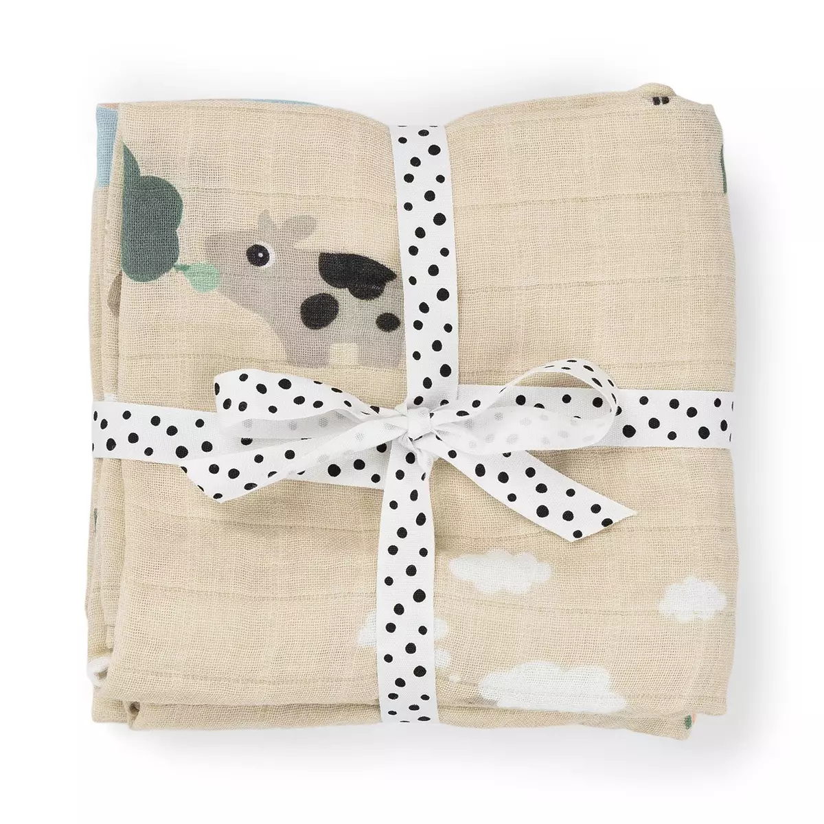 Muslinfilten Done By Deer Tiny Farm Sand är mjuka muslinfiltar som kan användas för många olika ändamål inom barnomsorg. I de ömtåligt färgade bomullsfiltarna äventyrar Done By Deers glada figurer. Paketet innehåller två muslinfiltar.
