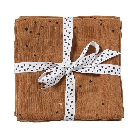 Harsoliina Done By Deer 2-pack Dreamy Dots Senap är mångsidiga mjuka harsoliner som kan användas i barnvård för olika ändamål, såsom rapan, matning, sovlakan osv.