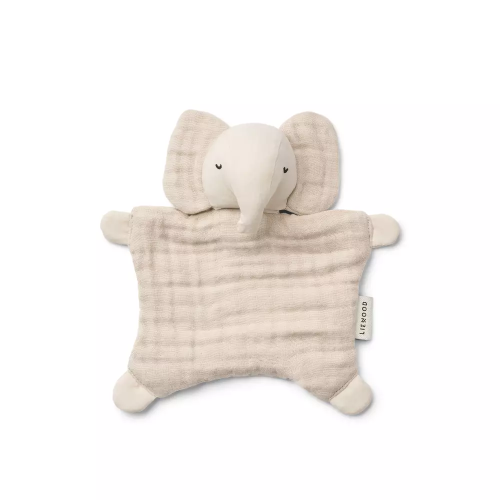 Liewood snuttefilt, i ljus färg och formad som en elefant. Den mjuka snuttefilten är gjord av ekologisk bomull.