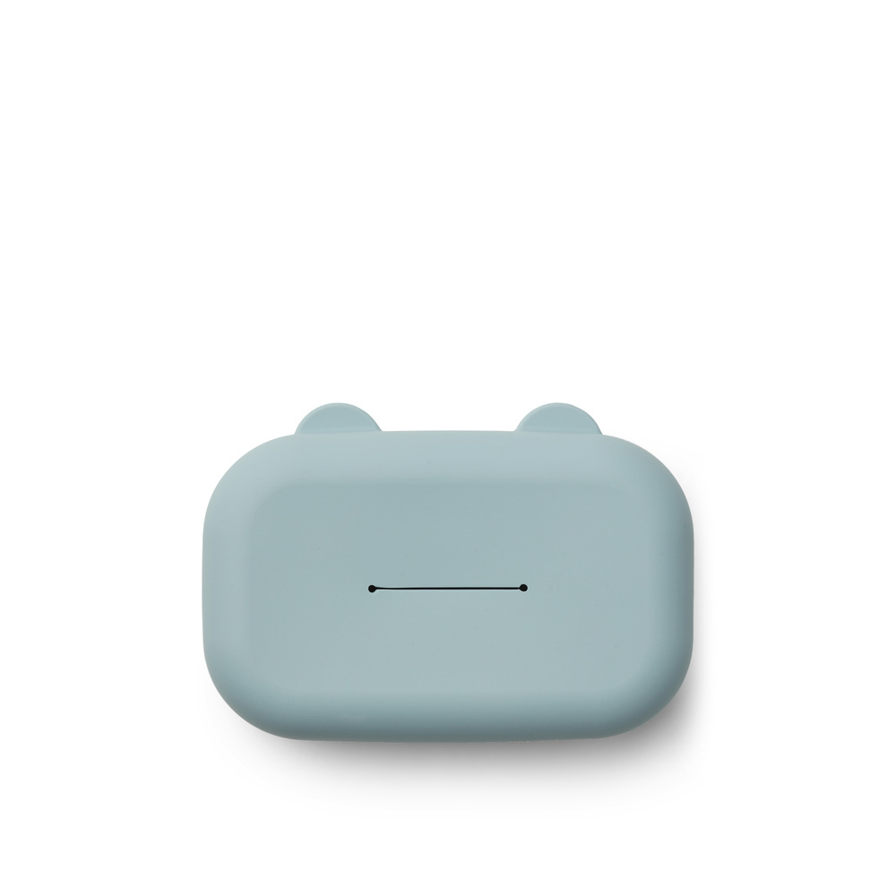 Liewood Emi silikonlåda för våtservetter i vacker blå färg. Lådan har söta björonöron.