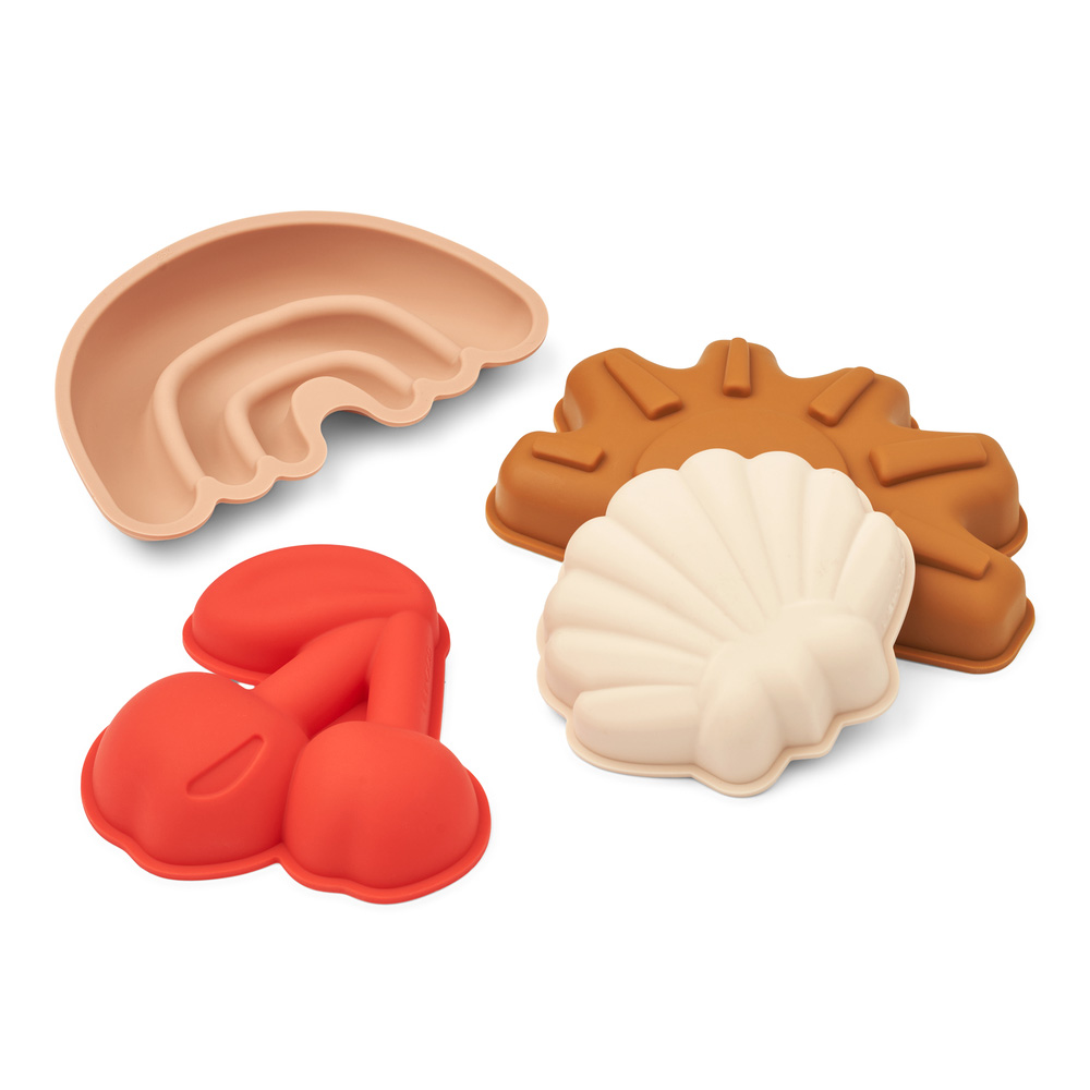 Liewood Gill sandformar i silikon Cherries/apple blossom, 4-pack är ett underbart set med sandformar för utomhuslekar. Setet innehåller fyra olika former.