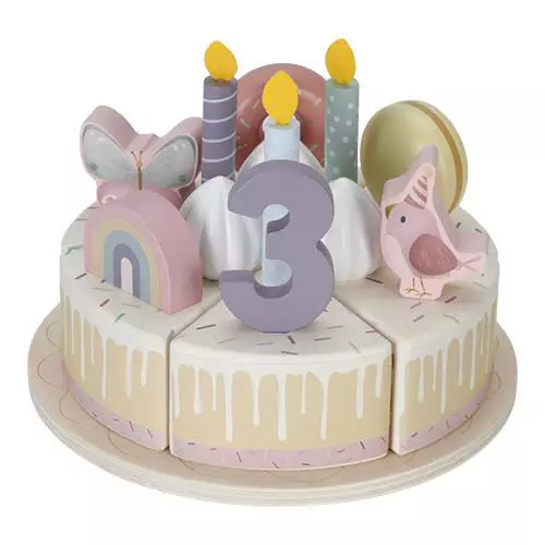 Little Dutch trälekaka Rosa 26 delar är en fantastisk kaka för barnens lekar. Dekorera kakan med macarons, donuts, regnbågar, djur och grädde, och bjud in dina vänner att fira med dig!