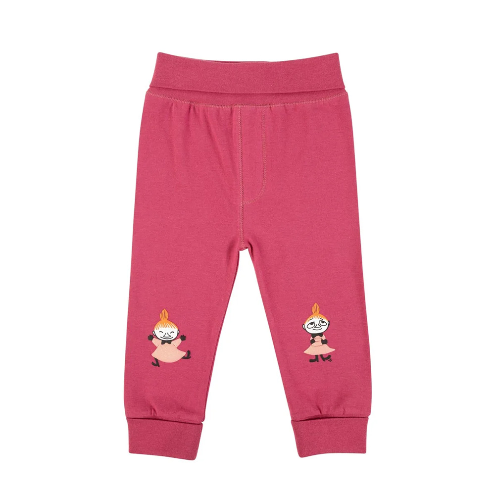 Martinex Muumi Myy byxor i rosa är sköna byxor med flexibel midja för barnet. På båda benens sidor finns bilder av glada Lilla My.