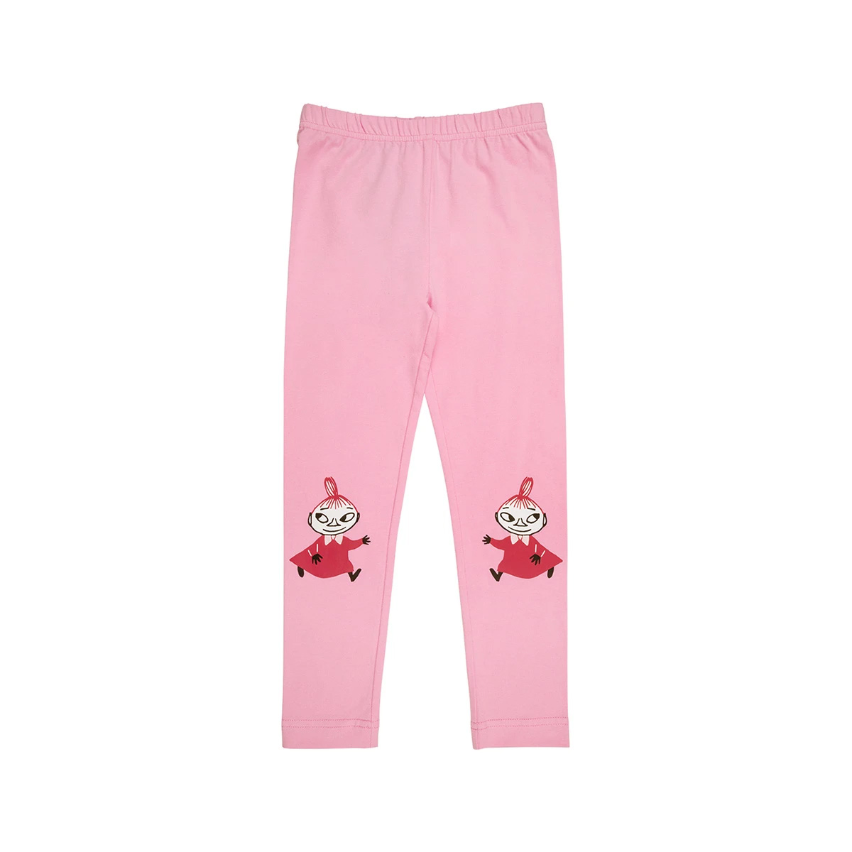 Pink Lilla Myy leggings är gjorda av ekologisk bomullstrikå. Glada Lilla Myy-motiv på knäna.