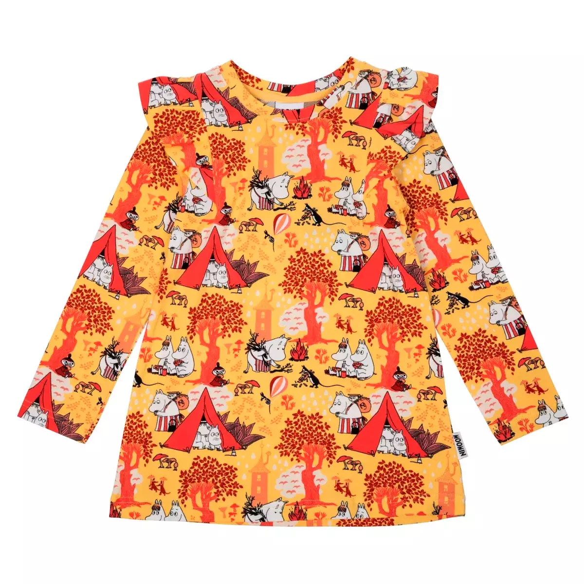 Martinex Muumi Utflykts Tunika i gult är en underbar Muumi-tunika. Tunikan passar både till vardags och fest och är lätt att matcha med andra kläder. I den gula klänningen har folkets Muumidalen gett sig ut på camping.