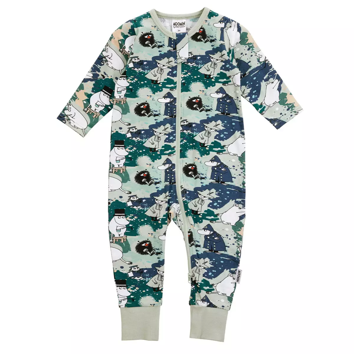 Martinex Muumi Vattenfärger Pyjamas Martinex Muumi Vattenfärger Pyjamas i grön är gjord av mjukt ekologiskt bomullsjersey. I den gröna nattsärken är invånarna i Mumindalen sysselsatta med att... Läs mer