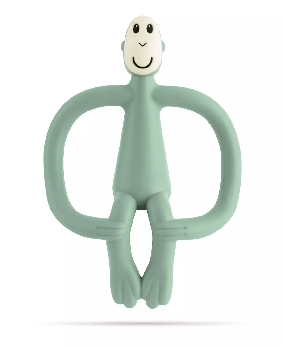 Matchstick Monkey Bitring Mint Green är en rolig, flexibel och perfekt storlek för små händer. Bitringen i silikon har texturerade nubbiga ytor som masserar babyns känsliga tuggande tandkött. Innehåller BioCote ® antimikrobiellt skydd, som håller bitringen fräschare och renare längre, så att ditt barn kan leka och bita utan bekymmer. Handtagen är lätta att greppa. Bitringens ergonomiska design hjälper babyn att utveckla motoriska färdigheter redan från tidig ålder.