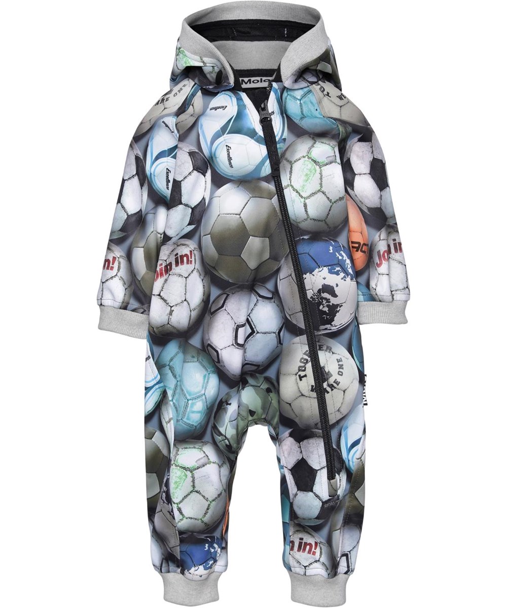 Molo Hill softshell-overall Football Camo är en praktisk säsongs-overall för småbarn. Den mjuka, vattentäta och andningsbara overallen har en lång dragkedja som underlättar påklädning.
