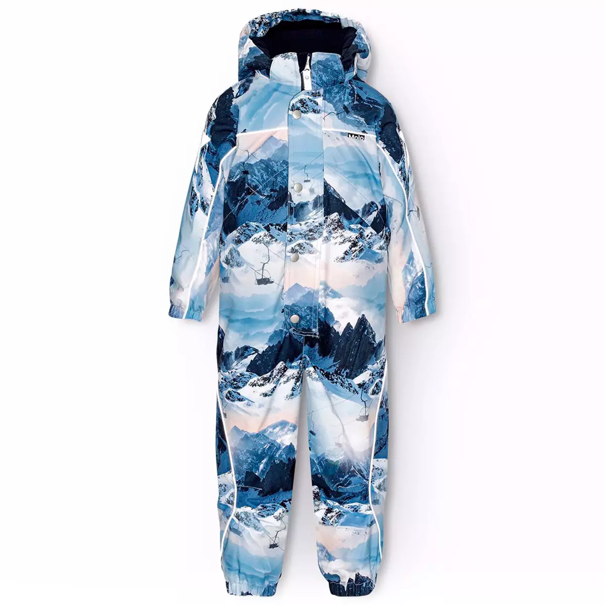 Molo Polaris vinteroverall med fantastisk bergsdesign. Flexibel och varm vinteroverall för barn med tejpade sömmar och snölås håller barnet varmt hela vintern.