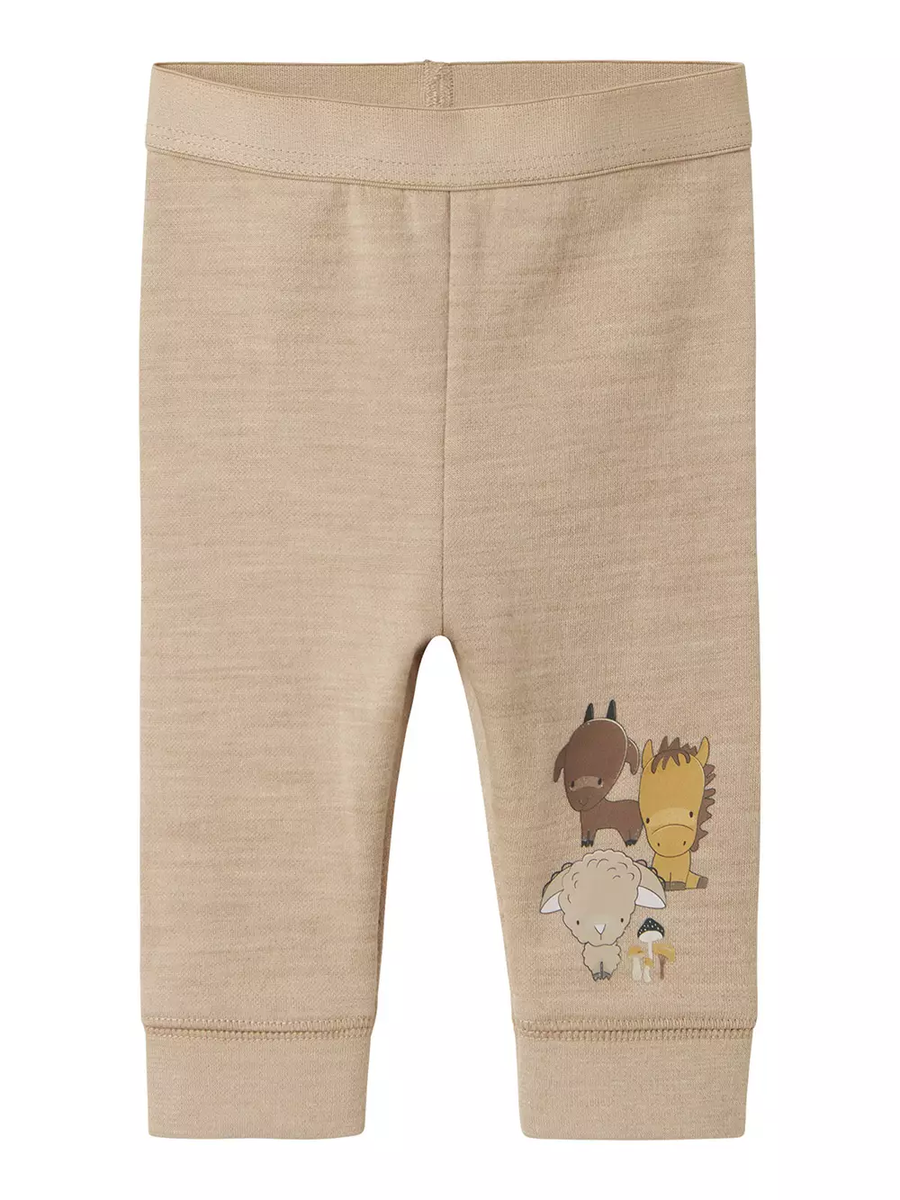 Söta Name It babysbyxor, gjorda av mjuk merinoull. Djurmotiv på det ena benet.