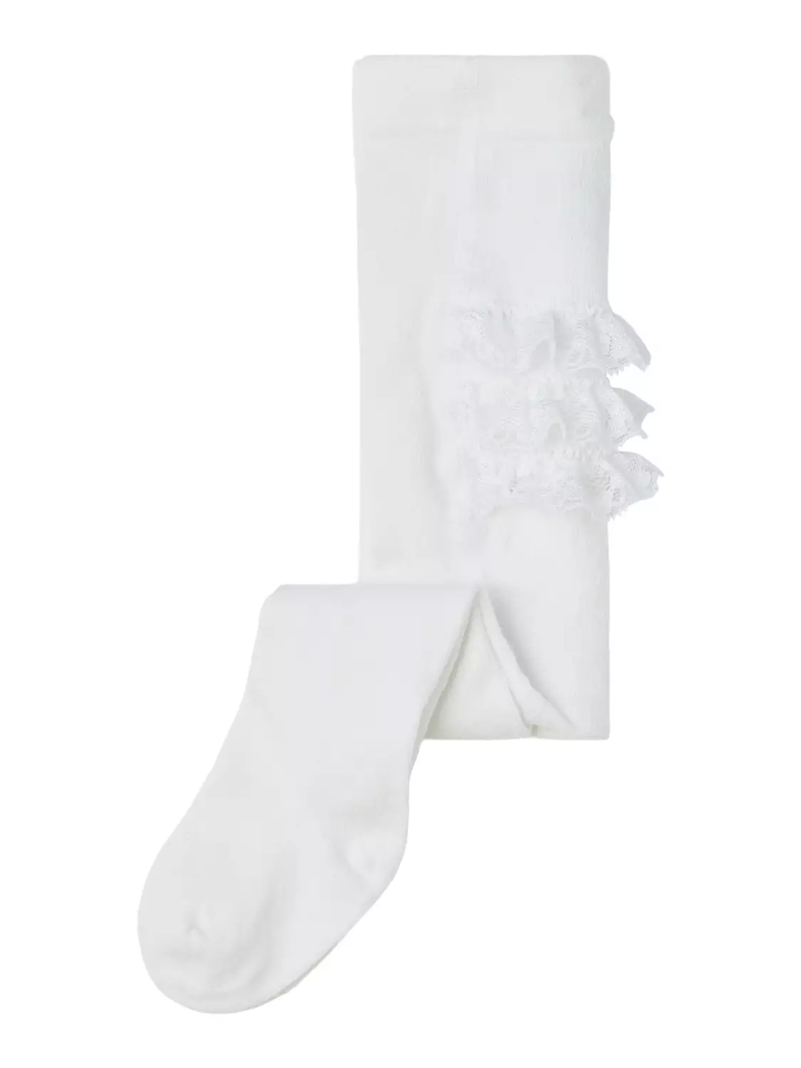 Name It strumpbyxor Bright White för baby, med söta volanger på baksidan. Strumpbyxorna är tillverkade av mjuk bomull. Passar både till vardag och fest!