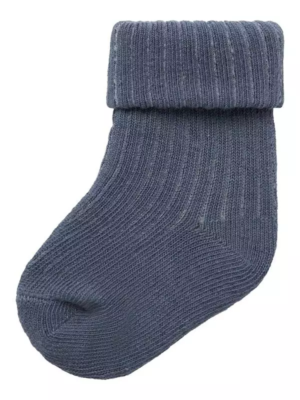 Name It socka i färgen Blue Mirage är mjuka och vackra ribbmönstrade sockor för barn. Ribbmönstret har ett vertikalt randigt mönster. Sockorna är elastiska och behagligt mjuka. De enfärgade sockorna är lätta att kombinera med olika kläder. Sockorna har en vikbar mudd.