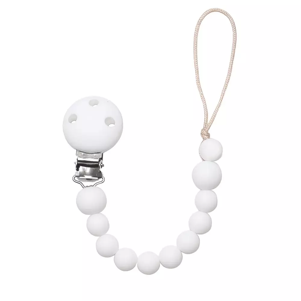 Tuttinauha MyLo Loop White är en vacker och elegant tuttinauha som håller nappen säker och förhindrar att den faller på golvet eller försvinner.