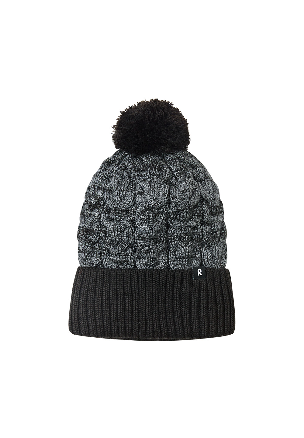 Reima Routii vintermössa Black är en stilren och varm mössa i ullblandning som håller huvudet varmt tillsammans med ett mjukt fleecefoder och bekväma vindtäta öronlappar. Mössan har ett vackert flätmönster, tjockt brett uppvikt kant samt en fluffig pom-pom.