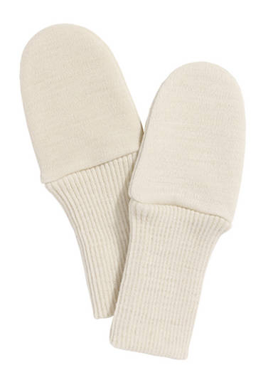 Ruskovilla första vantar, merinoull är underbart mjuka merinoullvantar (100 % ekologisk ull). Vantarna har ett silkesfoder. I första vantar finns det ingen tumme. Vantarnas färg är naturvit.