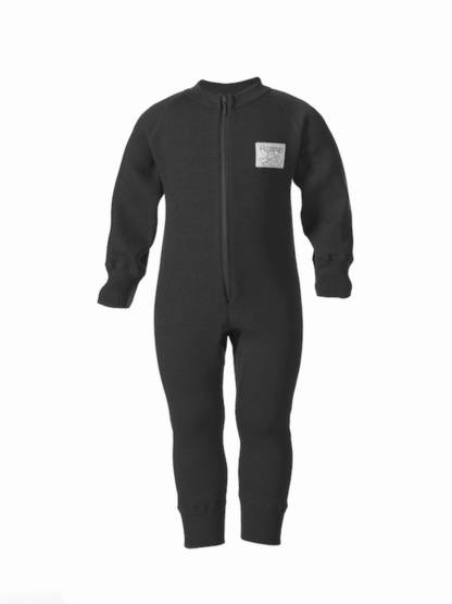 Ruskovilla mellanoverall svart är en härligt mjuk och varm, långärmad merinoulloverall för barn, gjord av 100 % ekologisk ull.