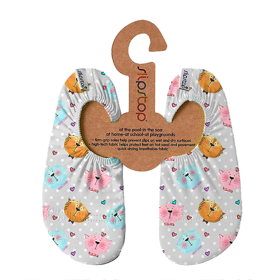 Slipstop-skor skyddar fötterna från smuts, varm sand och vassa stenar. Tyget är mycket lätt och elastiskt samt dessutom andas, vilket gör att fukt avdunstar från huden. Även det minsta barnet får lätt på sig skorna. Sulan är halkfri, vilket gör att skorna passar perfekt för dagis, gympa eller skolan m.m.