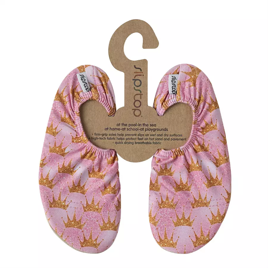 Slipstop-skor Diana är mångsidiga skor med ett roligt kronmönster. De kan användas på förskolan, i skolan, på stranden, i båten eller hemma. fjäderlätta skor som känns som att gå barfota.