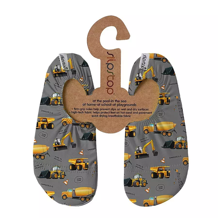 Slipstop tofflor Mixer är allroundtofflor med roliga motiv av arbetsmaskiner. De kan användas på förskolan, i skolan, på stranden, i båten eller hemma. De är fjäderlätta tofflor som känns som att gå barfota.