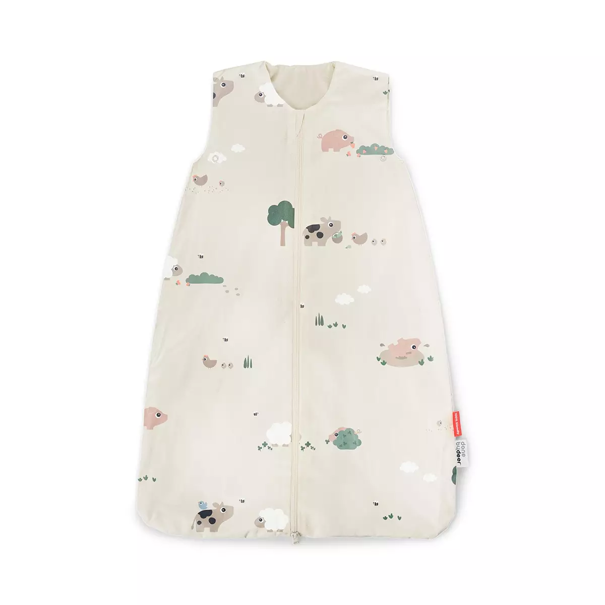 Sovpåse Done By Deer (1 tog) 90 cm, Tiny Farm Sand är en vacker och bekväm sovpåse för barnet. Den lugnar sömnen och ger trygghet till din baby. Sovpåsen är tillverkad av mjuk ekologisk bomull och håller barnet varmt. I sovpåsen har barnet alltid en slags filt över sig, eftersom den inte åker av eller att barnet kan sparka bort den med fötterna.