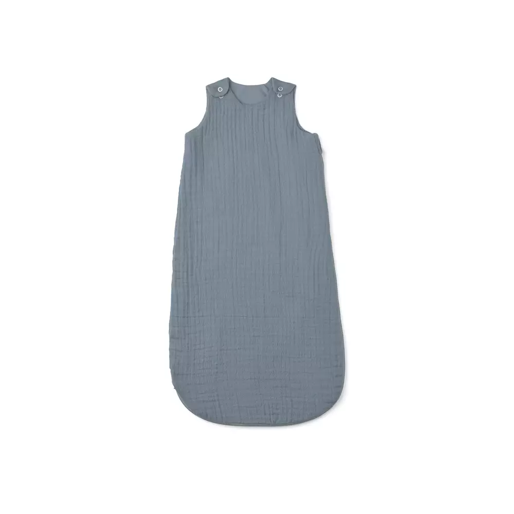 Sovpåsen Liewood Flora 80/86 i havsblå är mjuk, lätt och andningsbar. Den har knappar vid axlarna och en praktisk dragkedja som går från botten och uppåt på sidan. Sovpåsen är perfekt för bebisar som annars skulle sparka av sig täcket. Den andningsbara sovpåsen ger en känsla av trygghet och ger utrymme för rörelse och positionsbyte. Tillverkad av mjuk ekologisk bomull.