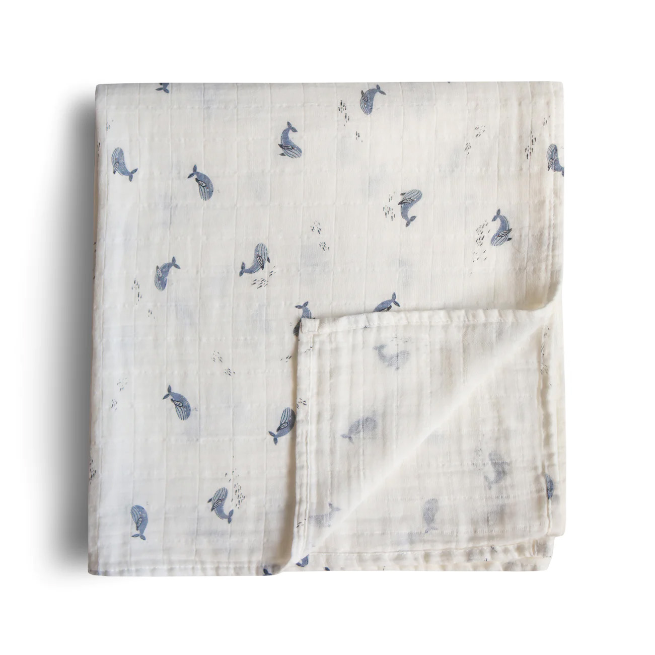 Jättelakan Mushie Whales är ett stort lakan med roliga valmotiv. Lakanen är gjort av mjuk ekologisk bomull. Lakanets storlek är 120 x 120 cm och på grund av sin storlek kan det även användas för lätt inpackning. Mushie lakan passar särskilt bra till många olika ändamål.