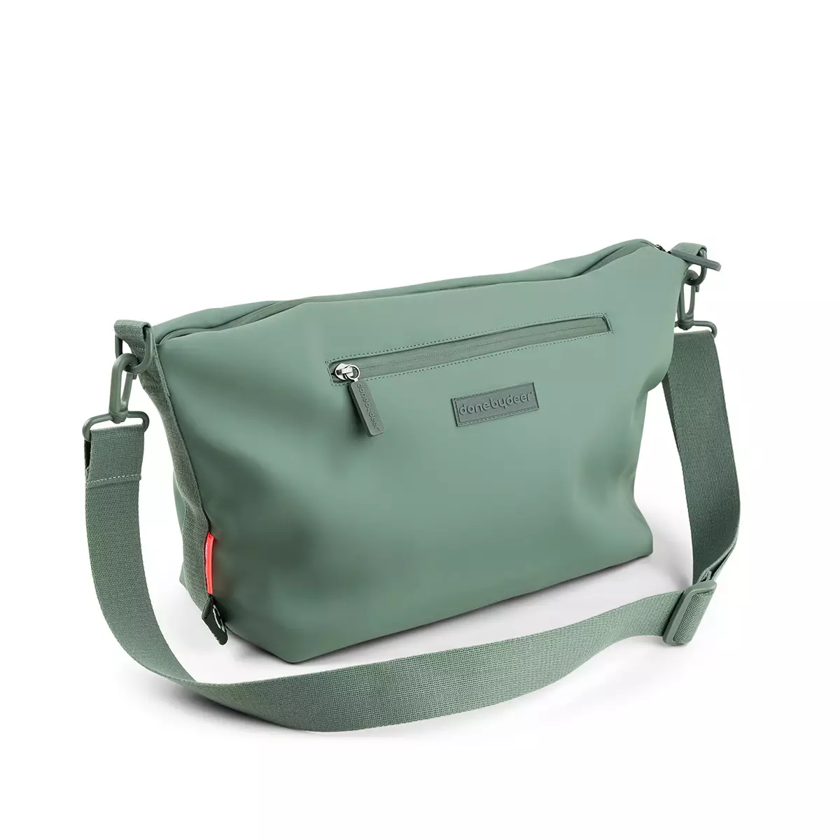 Done By Deer Barnvagnsbag Grön är en praktisk och stilren lösning för att hålla dina och ditt barns viktigaste saker organiserade och lättillgängliga. Väskan fästs enkelt på barnvagnens styre med de medföljande fästhakarna.