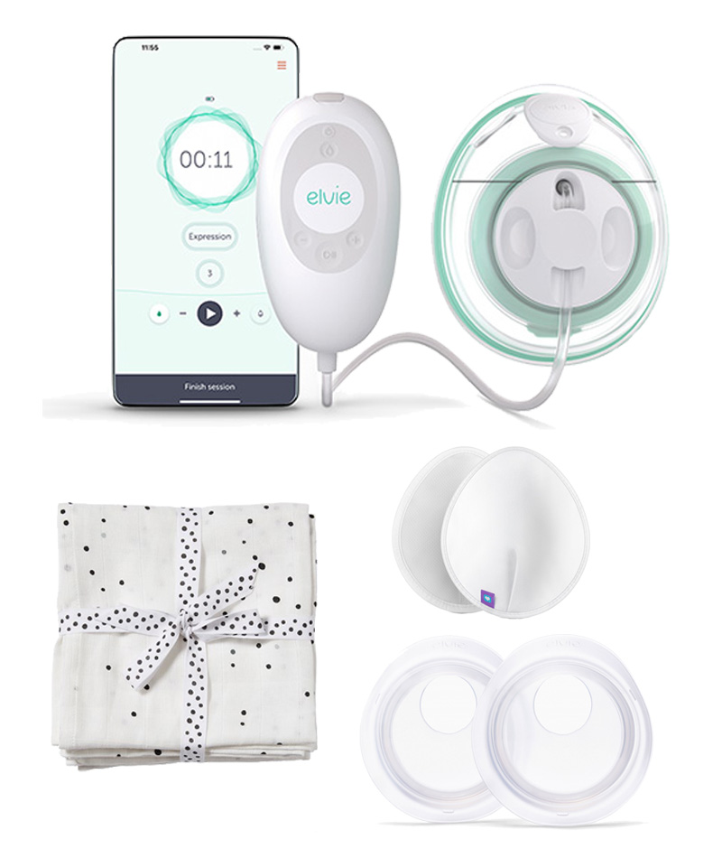 Elvie Stride bröstpump startpaket Inkl. Elvie Catch mjölkuppsamling mm. - ett startpaket som innehåller hjälpmedel för amning. Paketet innehåller en batteridriven bärbar bröstpump, mjölkuppsamlare, tvättbara bröstskydd samt mjuka musselduk.