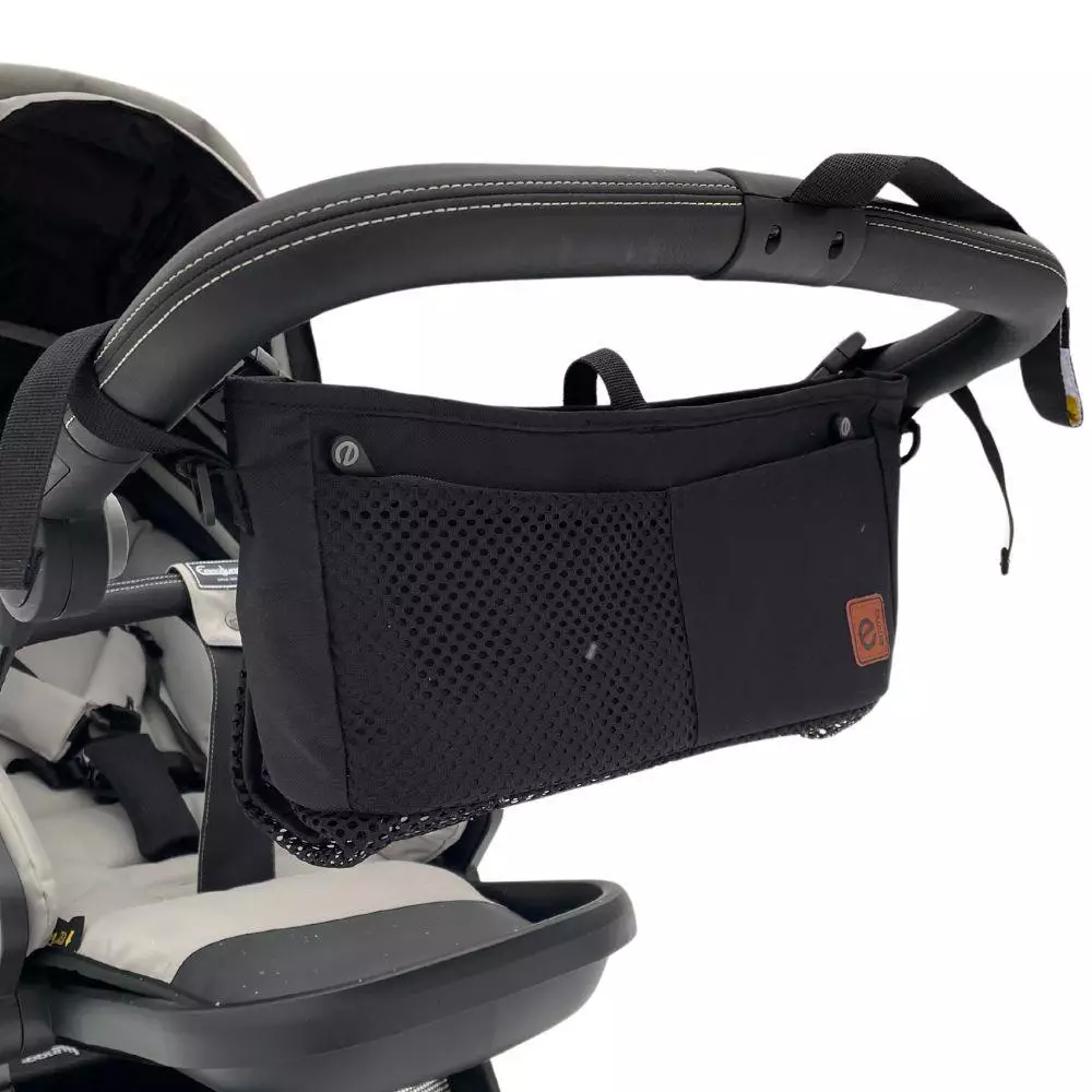Emma organizer tillbehörsväska för barnvagnar är svart och har ett nätkasse. Den fästs på barnvagnens handtag - väskan rymmer viktiga saker som plånbok, mobiltelefon och nappflaska så att de är snabbt och enkelt tillgängliga. Inkluderar en stor nätkasse.