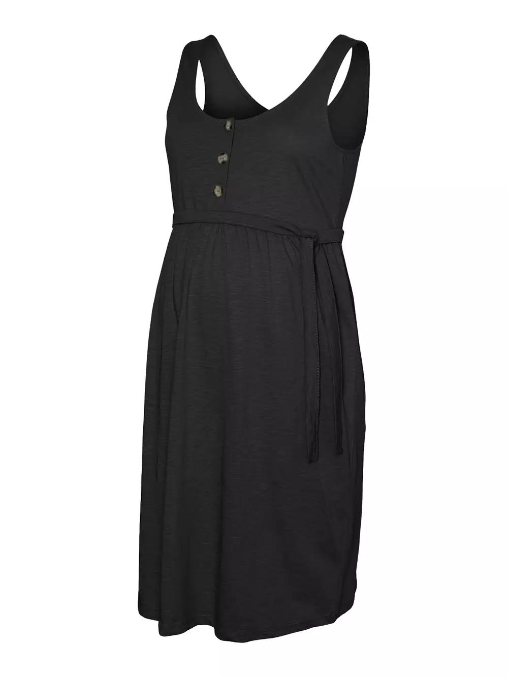 En avslappnad och bekväm klänning för graviditet och amning. Den svarta ärmlösa klänningen är en trygg sommarklänning!