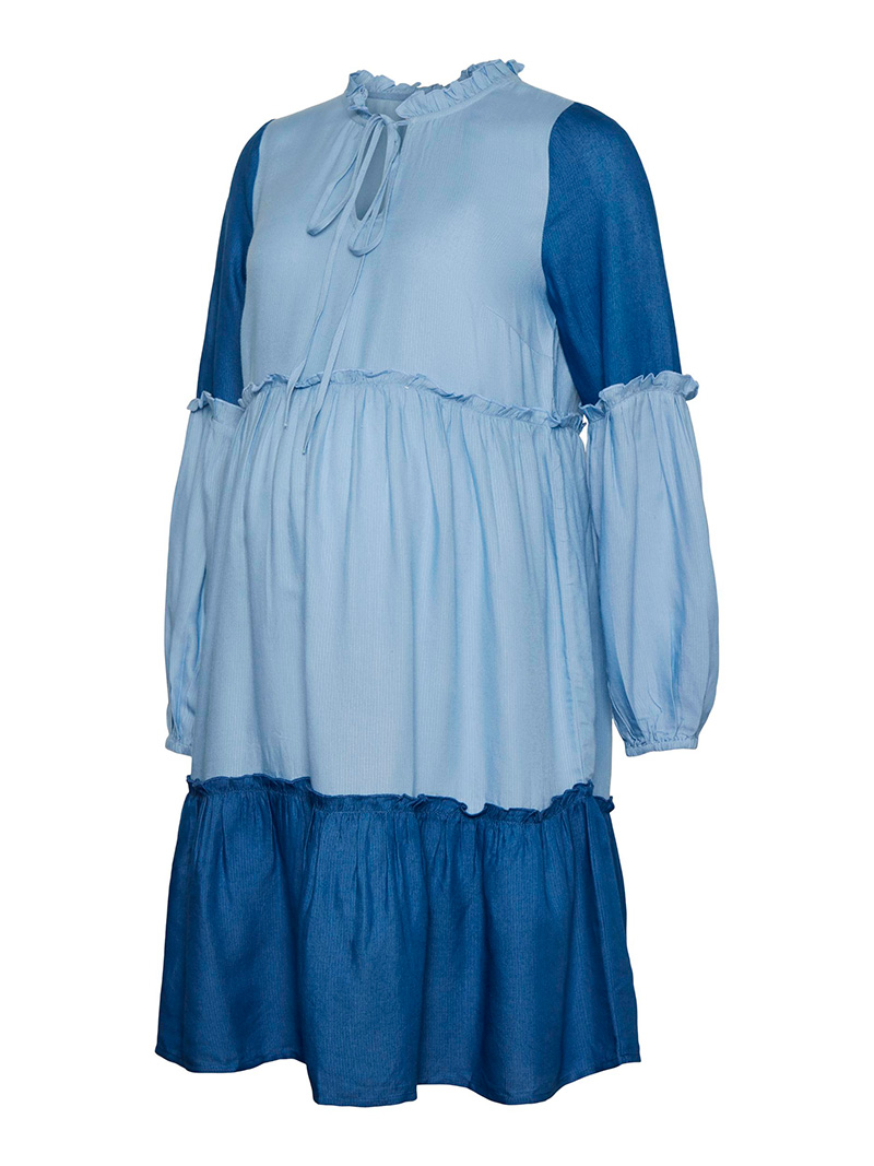 Gravidklänning Mamalicious Zigga True navy är en vacker midiklänning i blått för gravida. Klänningen har långa ärmar och den lösa modellen gör den bekväm och lätt att använda med en växande gravidmage.