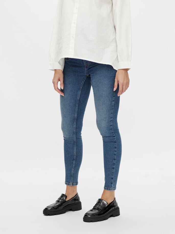 Mammabyxor Mamalicious Amy Medium Blue Denim är bekväma, smala jeans för blivande mammor. De har en resår i midjan som sträcker sig över magen och håller byxorna på plats utan att vara för åtsittande. De blå jeansen är lätta att matcha med vilken topp som helst, för arbete eller fritid.