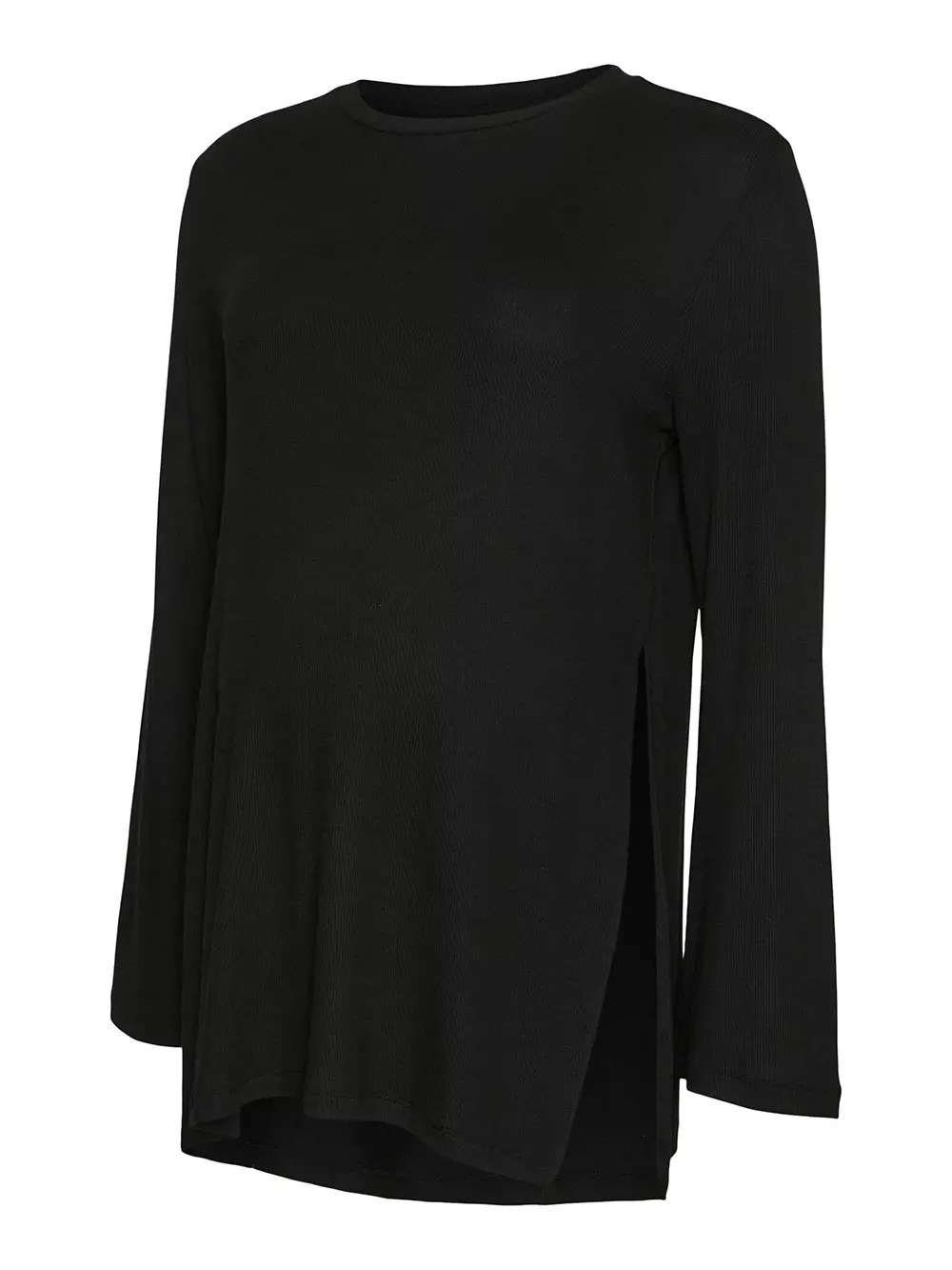 Mamalicious avslappnade svarta tröja passar under hela graviditeten. Långa slitsar på sidorna.