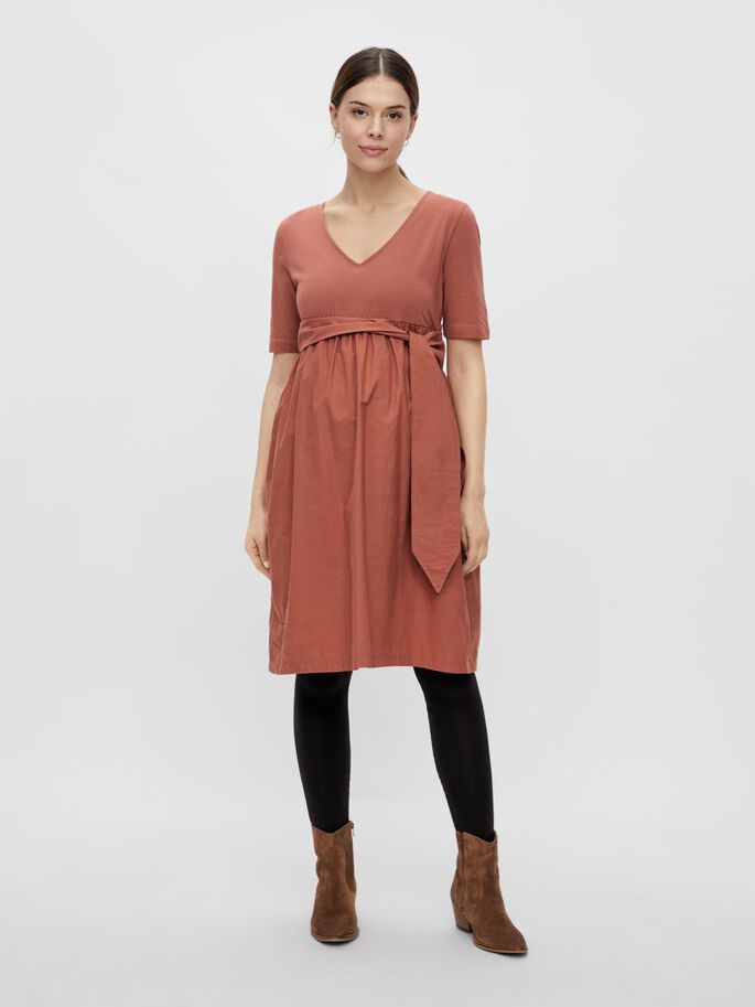 Mamalicious Carolina gravidklänning är en vacker klänning med rik kjol för graviditeten. Färgen är höstigt Copper Brown.