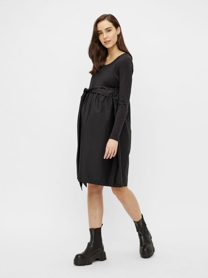 Mamalicious Carolina gravidklänning i svart är en vacker svart klänning för graviditeten. 4/4 ärmar och en vacker midjebandrosett. Kjolen faller vackert och överdelen är mjuk bomull. Klänningen är designad för alla graviditetens faser.