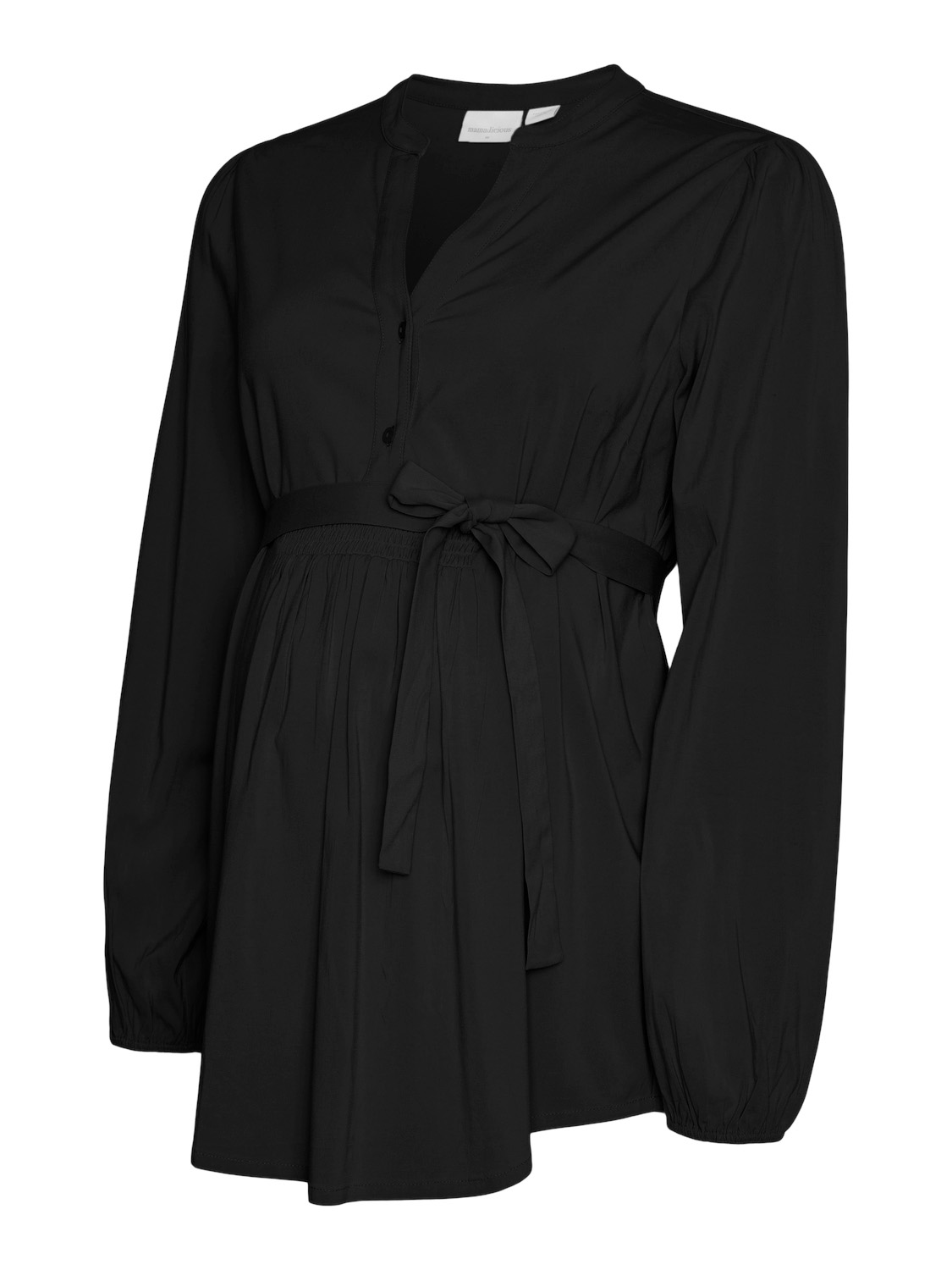 Mamalicious Elva Gravidtröja Black är en bekväm och lätt plagg för blivande mammor. Den långärmade tröjan har ett avtagbart tygbälte som framhäver den vackert växande magen. Knäppningen fram möjliggör även amning. Elastiska ärmslut och en fint fallande nederkant.
