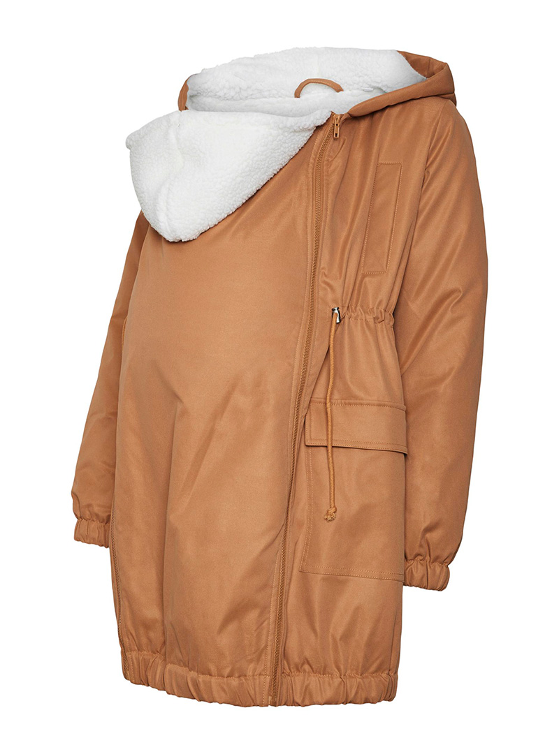 Brun 3-in-1 gravidjacka som passar både under graviditeten och efteråt som bärjacka.
